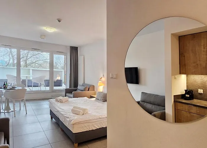 Apartmán má umístění na pobřeží, 1 km od centra města Miedzyzdroje. Hosté budou ubytováni 9 minut chůze od Pláž Miedzyzdroje. Pizzeria Desperados je vzdálen asi 5 minut chůze. Apartmán Holiday Home Aquamarina Prima 04 Z Tarasem Przy Plazy leží v těsné blízkosti kaplica "Stella Matutina".